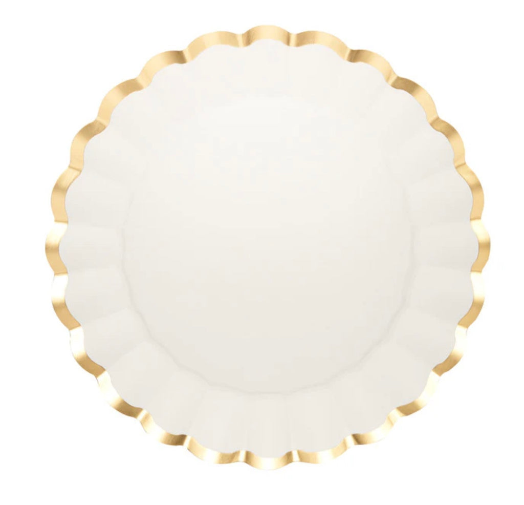 These elegant, scalloped edged, white charger plates with gold linings are the perfect addition to your table, adding a touch of timeless sophistication to any event! Perfect for brunches, baby showers, spring luncheons, Mother’s Day, garden parties, birthdays, and more, they’ll impress your guests with their refined style. Your guests won’t believe these stunning pieces are disposable!